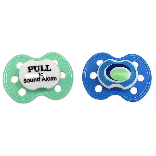 Here are some of the great features of BooginHead BPA Free Pacifiers - Green Pull To Sound Alarm & Blue Saucy Stripe Blue