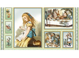Here are some of the great features of ALICE IN WONDERLAND Mad Hatter Tea Party Cheshire Cat Lewis Carroll Craft Panel Cotton Fabric By The Panel 23 x 43/44